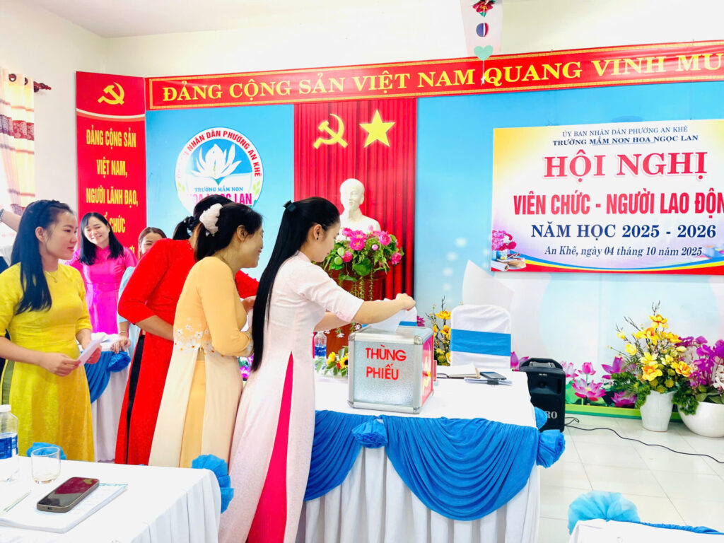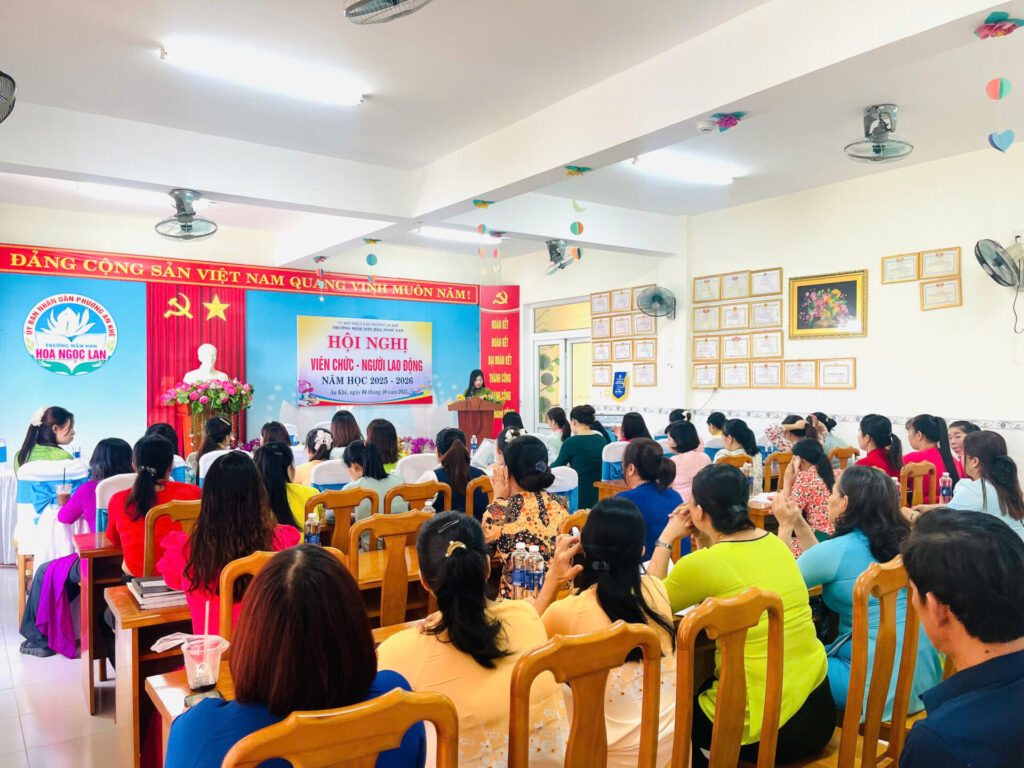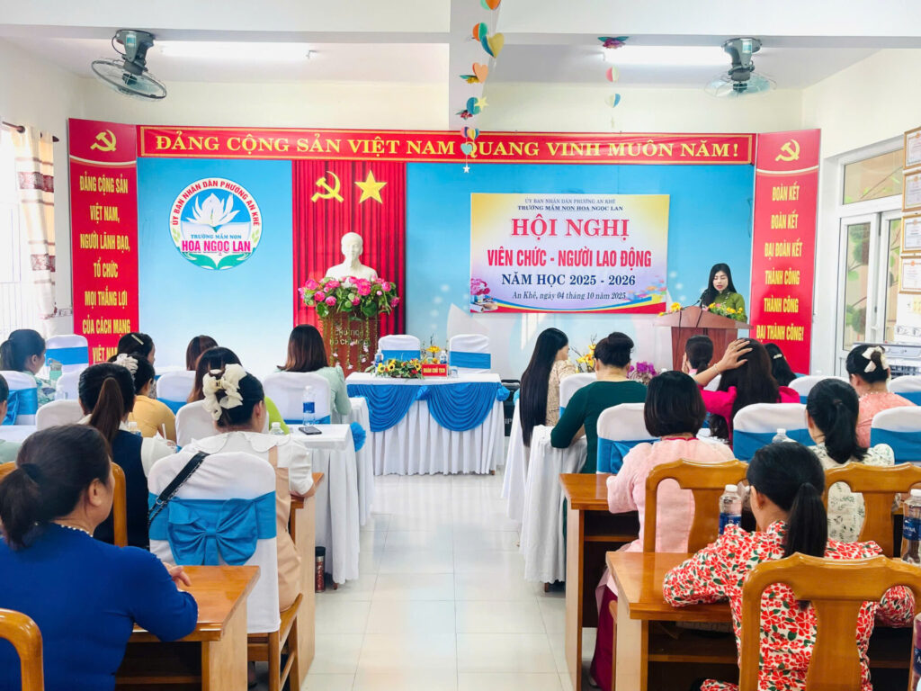 Thực hiện Hướng dẫn số 04/HD-UBND ngày 18/9/2025 của UBND phường An Khê về việc tổ chức Hội nghị Viên chức, người lao động năm học 2025-2026. Sáng nay, ngày 04/10/2025, trường MN HOA NGỌC LAN đã tổ chức Hội nghị VC-NLĐ năm học 2025-2026.
