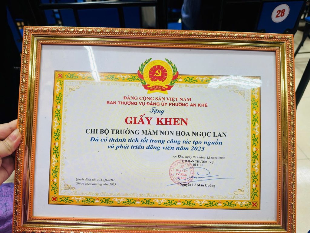 Giấy khen Chi bộ đã có thành tích tốt trong công tác tạo nguồn và phát triển đảng viên năm 2025