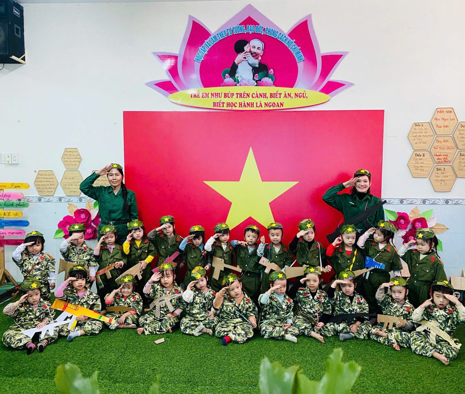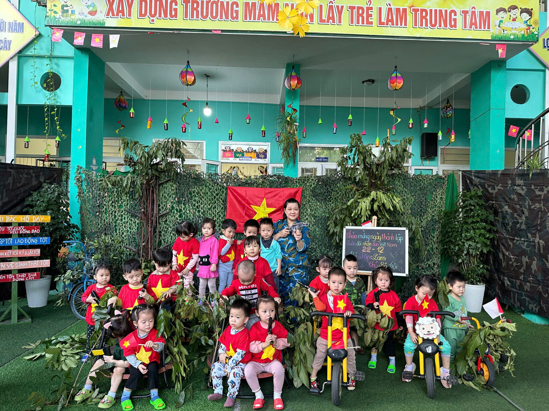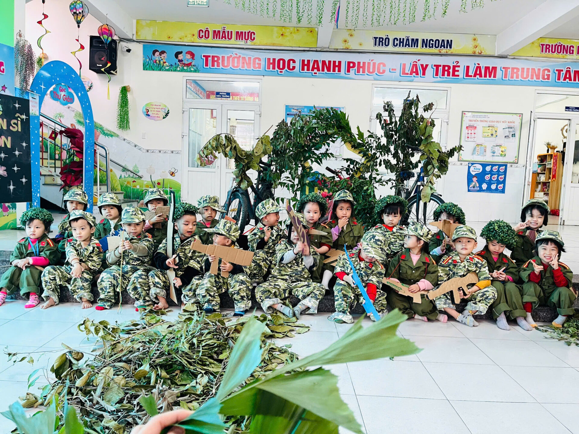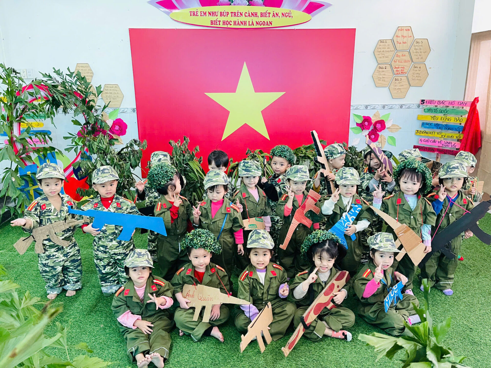 Tuổi nhỏ làm việc nhỏ. Các cháu trường MN đã cùng cô giáo tham gia các hoạt động trải nghiệm Em làm chiến sĩ tí hon, hoạt động tạo hình sáng tạo, tạo ra những sản phẩm có ý nghĩa… Để giáo dục và nhằm Tôn vinh, tri ân các Anh hùng liệt sỹ, các thế hệ cán bộ, chiến sỹ Quân đội nhân dân Việt Nam đã cống hiến, hy sinh lập nên những chiến công hiển hách, làm rạng rỡ lịch sử dựng nước và giữ nước của dân tộc.