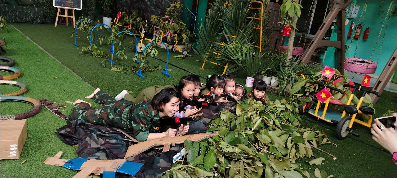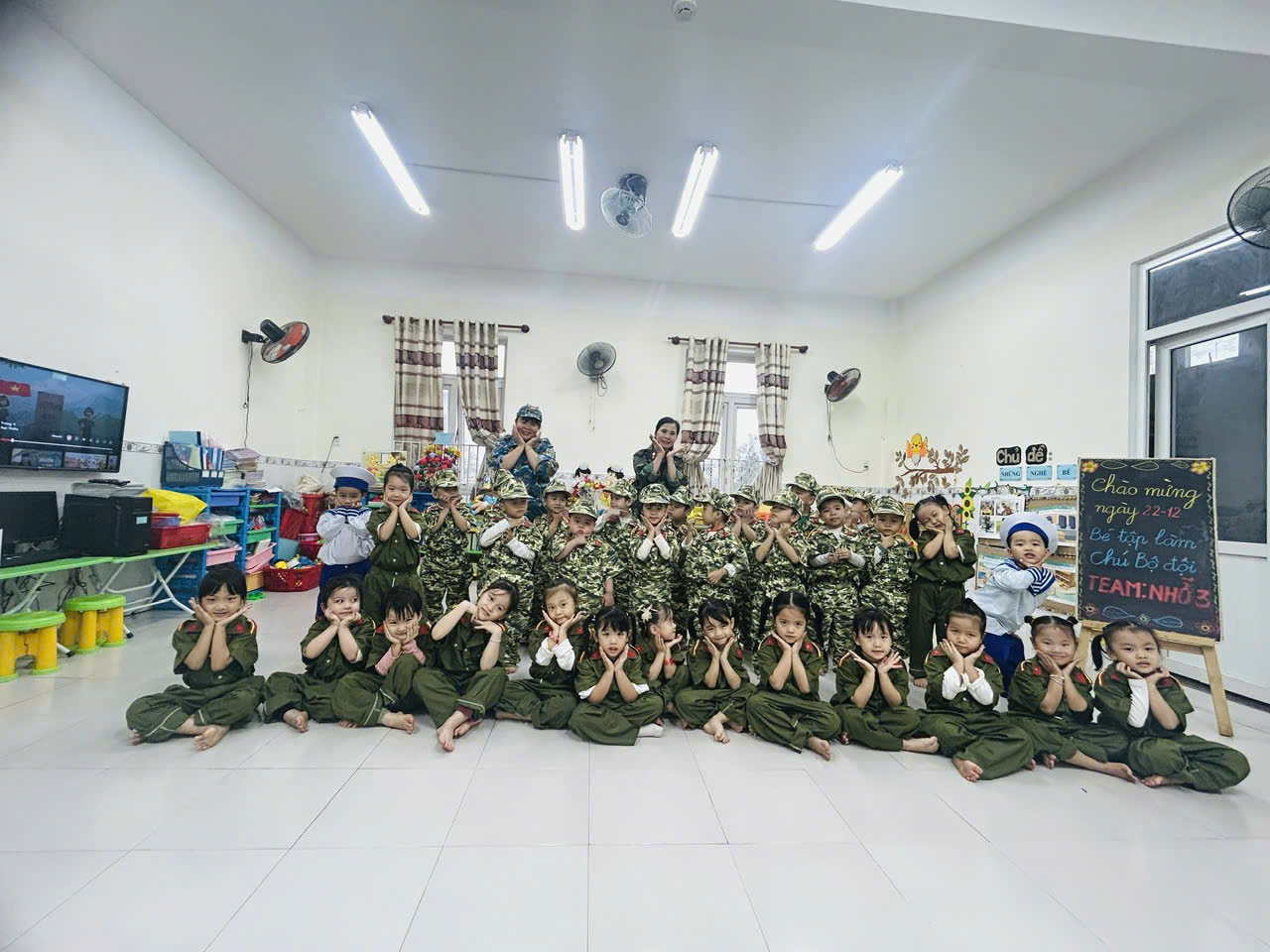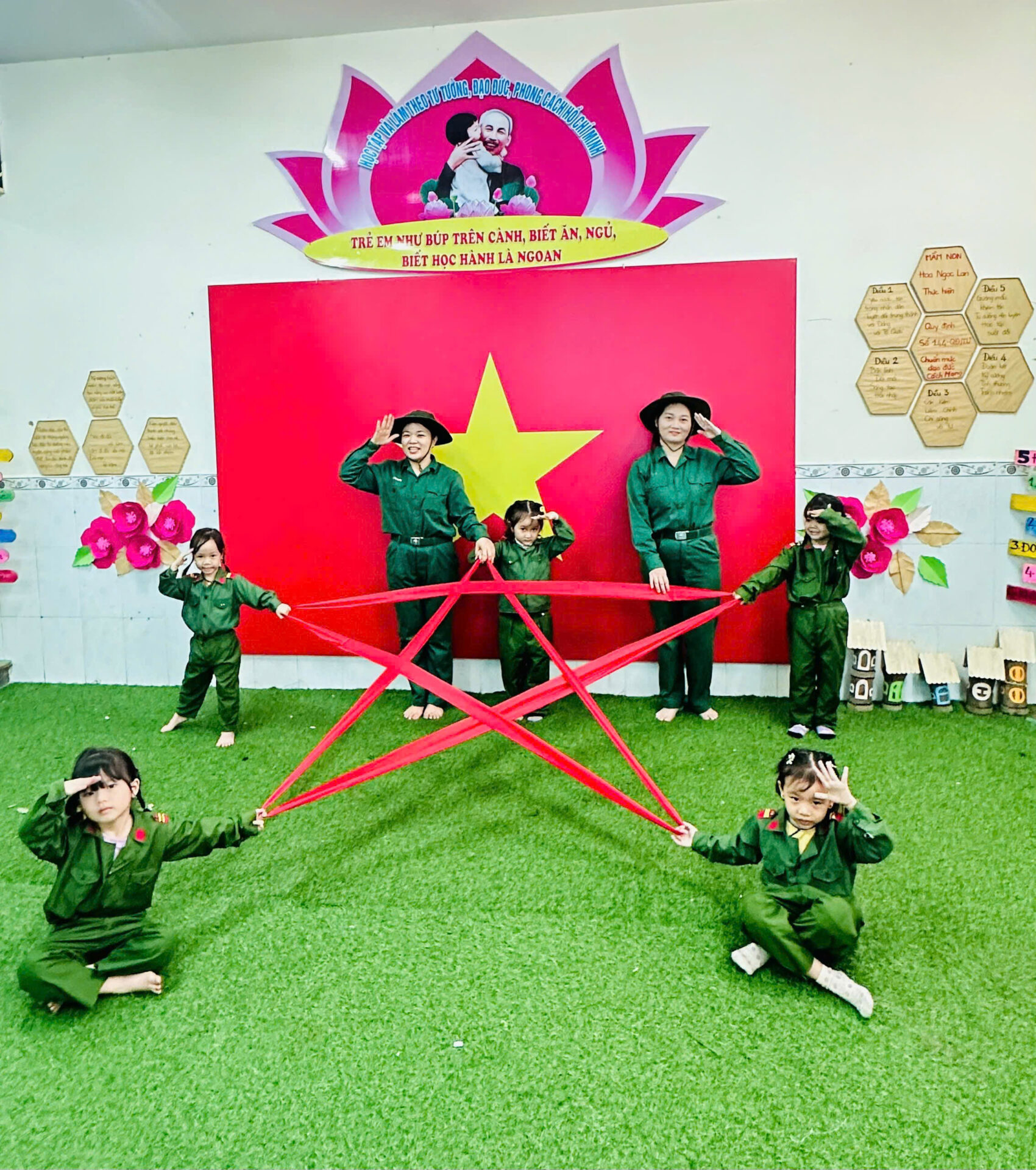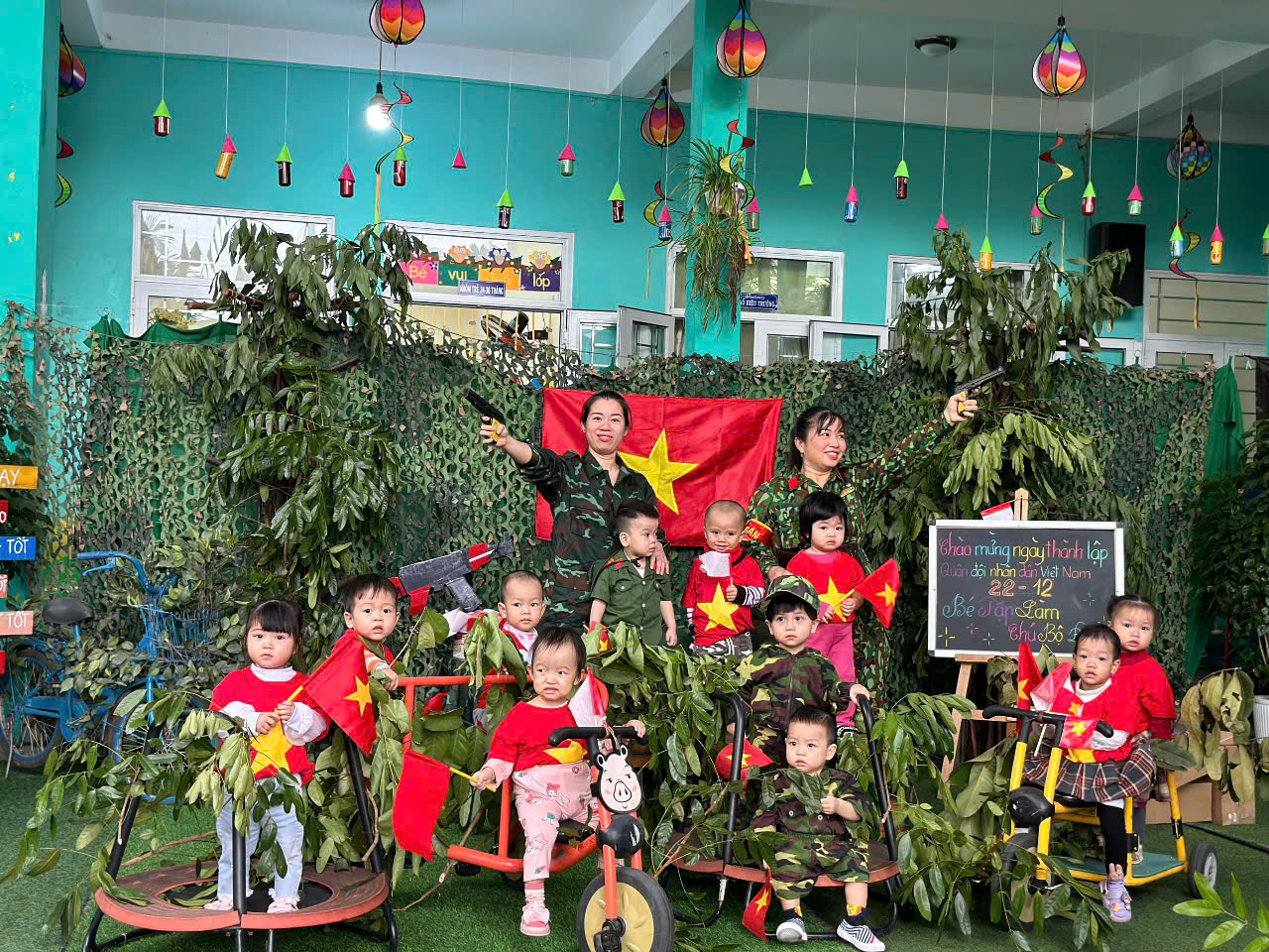 Tuổi nhỏ làm việc nhỏ. Các cháu trường MN đã cùng cô giáo tham gia các hoạt động trải nghiệm Em làm chiến sĩ tí hon, hoạt động tạo hình sáng tạo, tạo ra những sản phẩm có ý nghĩa… Để giáo dục và nhằm Tôn vinh, tri ân các Anh hùng liệt sỹ, các thế hệ cán bộ, chiến sỹ Quân đội nhân dân Việt Nam đã cống hiến, hy sinh lập nên những chiến công hiển hách, làm rạng rỡ lịch sử dựng nước và giữ nước của dân tộc.