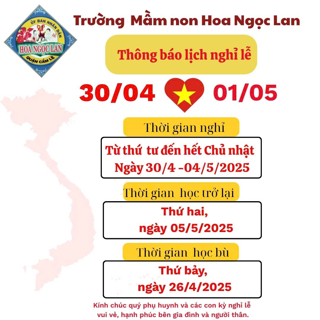 Thông báo lịch nghỉ lễ 30/4-01/5